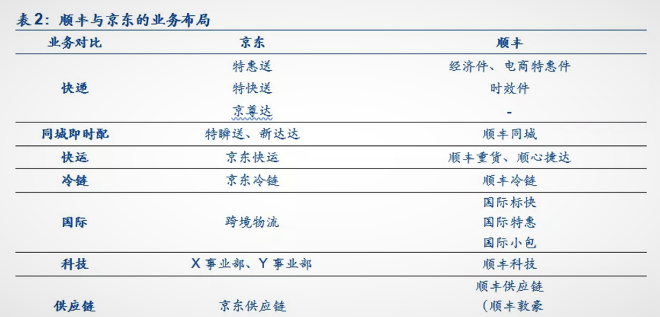 服务场景上,顺丰、通达系快递公司的特点是机场、网点业态丰富,而京东物流的特点是业务广、一体化智能仓配效率高。