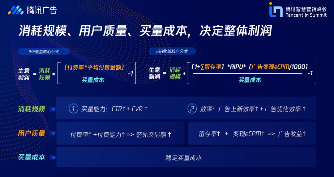 网服产品增长所需的核心要素主要包括三点:消耗规模、用户质量与买量成本。