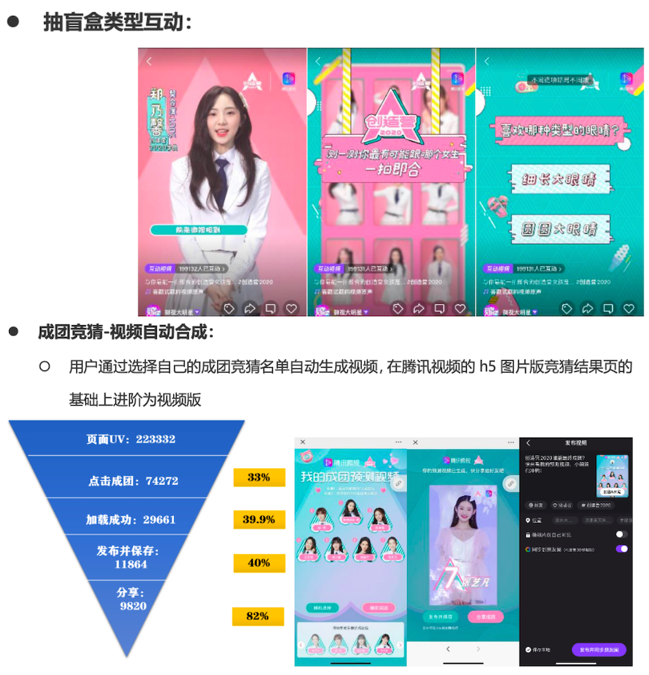 腾讯微视原本就是可以与长视频内容充分联动的短视频产品,因此在整个营销过程中双方设计了互动答题、内容联动、学员自创+粉丝二创、组建打投群、联动娱乐大号等多种玩法。其中仅互动答题就包括了““你比我猜大挑战”、“中华小曲库”、“真爱粉测试”、“盲盒猜猜猜”等等。