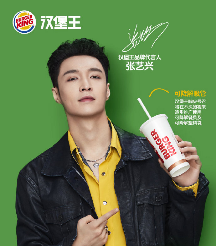 除了官宣品牌代言人和发布广告片,汉堡王中国也表示在不久的将来将逐步使用可降解材质餐具替代一次性不可降解塑料餐具,一年预计将减少近2亿6千万根不可降解塑料吸管。