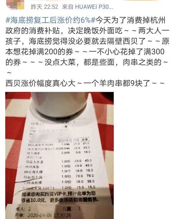 近期,不少网友在微博发布消息称,海底捞恢复堂食之后涨价,且菜量变少。