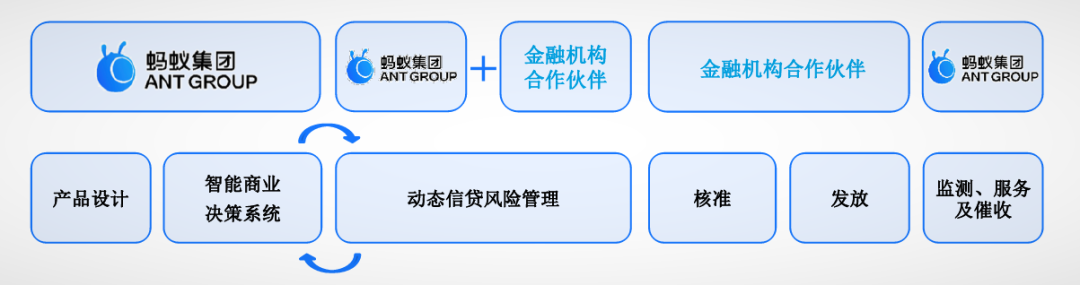 通过花呗、借呗和网商银行撬动平台内的中小商家和用户资源,向金融机构收取技术服务费,也借助多维度消费数据减少坏账率,保证借贷者及时偿还,蚂蚁可以从B端、C端的双向服务中获利。