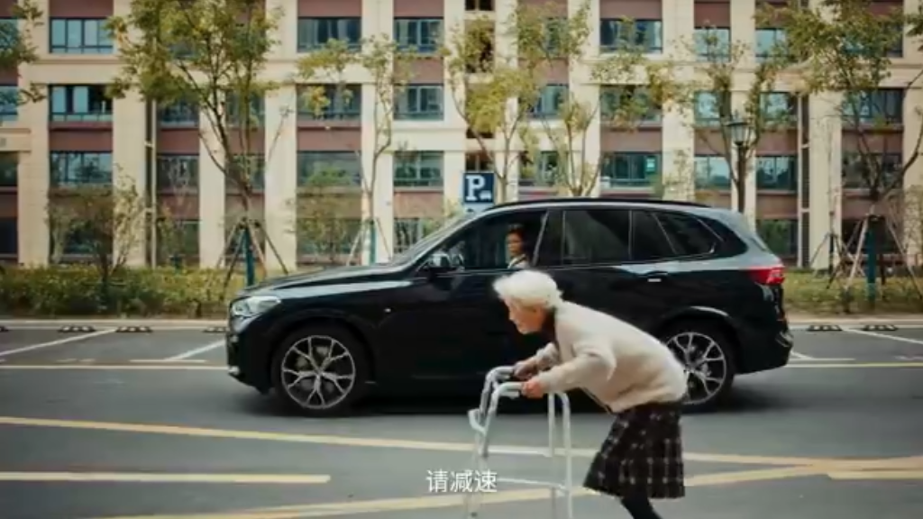 一位女生正缓慢驾驶,眼看车的速度都比不上旁边拄拐的老奶奶了,可导航仪却还是一直强调“请减速”“请减速”。
