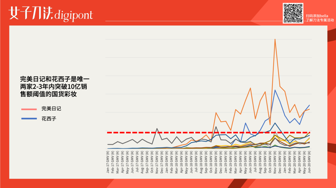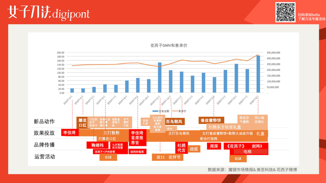 所以我从多个数据平台上抓取了数据,从花西子的战略卡位、品效打法等多个维度,上周我在女子刀法会员俱乐部·轻分享栏目,给大家详细拆解了花西子的品牌+增长打法↓