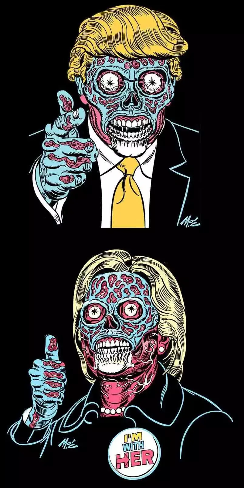 还有艺术家Mitch O'Connell,创作的令人畏惧的骷髅川普。