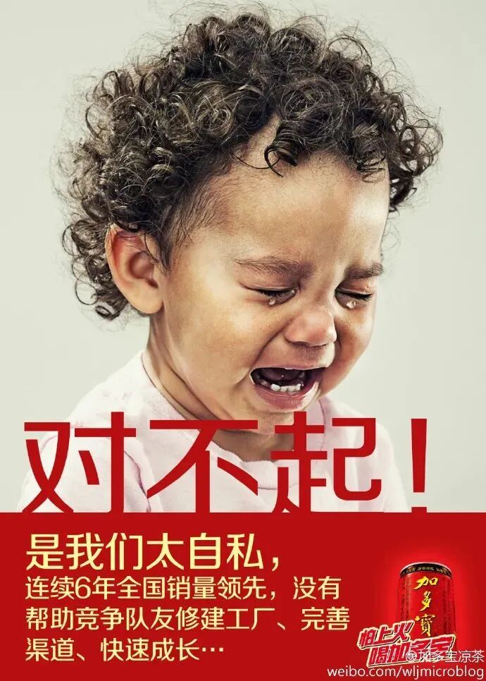 比如,在六一儿童节期间推出“放过孩子吧”营销内容和七夕情人节期间推出“别问”系列海报,高度迎合了当下年轻消费者的逆反心理,一招“欲擒故纵”不仅趣味横生,也传递出了暖心的品牌理念。电子书Kindle:“唉,我真是太二了!前几天才给家里亲戚孩子一人买了一台kindle oasis。今天看了一眼kindle的双十一活动,全线机型最高直降400元!唉,算了,罚自己今晚松茸鱼子馅的饺子少吃一个吧!”在不经意间突出产品优惠,同时又紧跟时事潮流,这种打广告的形式深受用户喜爱。于是网友们也纷纷用上凡尔赛文学,帮kindle做宣传:“昨晚,捧着我的旧kindle缓缓入梦,梦里,kindle官方说给我送一台最新的,这一晚,睡得很香”。加多宝:“对不起,是我们太自私,连续6年全国销量领先,没有帮助竞争队友修建工厂、完善渠道、快速成长”、“对不起,是我们太笨,用了17年时间才把中国的凉茶做成唯一可以比肩可口可乐的品牌”。加多宝把“凡尔赛文学”融入到品牌宣传中,看似是在自嘲,但宣传效果比自卖自夸好,品牌能以迅雷不及掩耳之势抓住用户眼球,戳中用户痛点。相较于遵循正向思维逻辑开展的正向营销来看,反向营销更多的是将以货为中心,转向以消费者为中心,围绕用户来反向生产用户需求的内容,用创意把营销活动和品牌理念巧妙地连接起来,为特定的人群生产特定的内容。