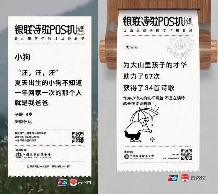 公益营销,对于品牌来讲,品牌活动的属性从商业活动转变为社会化活动,成为社会公众主导的传播活动。因此,品牌想要吸引更多的社会公众参与,就必须以社会痛点为切入点,将公益行动和社会议题进行深度绑定,触动公众的情绪,与品牌形成价值认同的价值关系,才能凸显品牌的价值。而且,公益营销不能仅浮于口号宣传层面,而是还要提供实实在在的社会问题解决方案,并付诸于行动,才能真正走进用户心智中。毕竟,消费者亲自去体验和实践,才能牢牢记住品牌的核心价值,这种实践行为已经成为消费者生活中的一种阅历,记忆必然会更加深刻。支付宝这次的公益行动,通过线下种树实践行动作为营销创意承接,将公益付诸于行动;中国银联发起的“诗歌POS机”公益项目,联动各大商场和便利店渠道资源,通过放置银联诗歌POS机,为都市青年提供花一元在POS机上买一首诗的线下接触点。