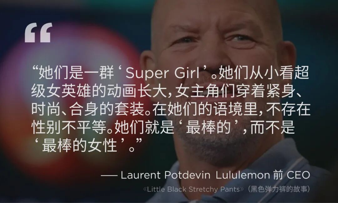 “如果在工作、健身、逛街的活动中间不用换衣服,我可以每天为她们节省45分钟。” Wilson在书中写道。正是对人群超前的洞察,对新需求的满足,Lululemon切中了20年前美国崛起的超级女孩,也打动了近几年的中国女孩。