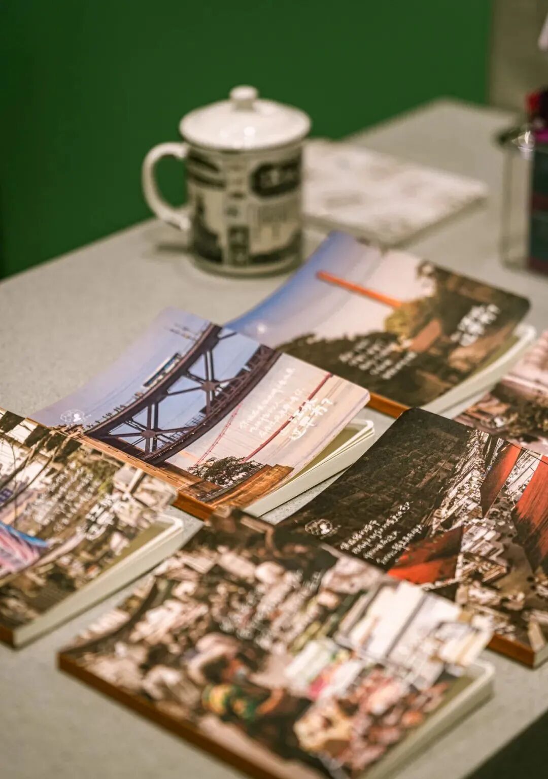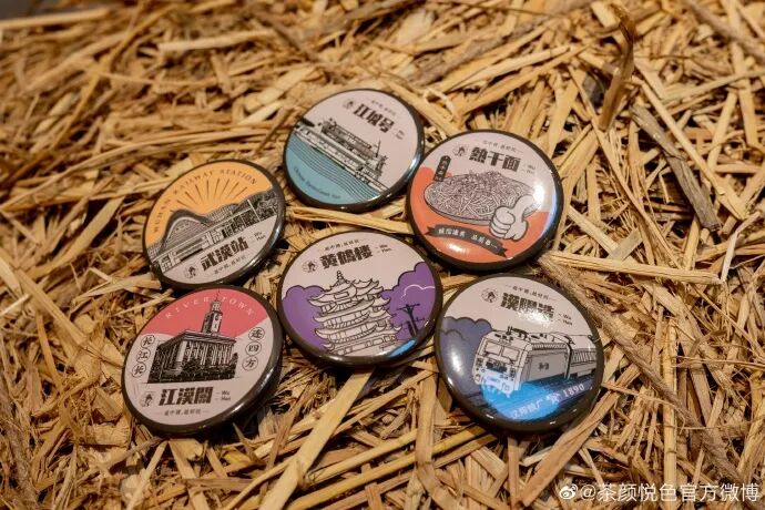 周边产品上,以“江城过早”为主题的笔记本、茶杯、小徽章、明信片等物品,绘上武汉特色的热干面、黄鹤楼、武汉站、江城号等大家熟悉的事物,配上怀旧风格,瞬间抓住了人们的注意力。