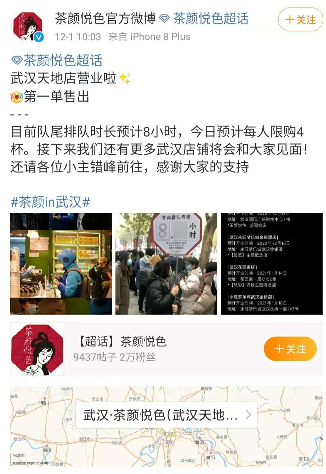 到昨天,茶颜悦色官方微博晚上9点才停止排队。