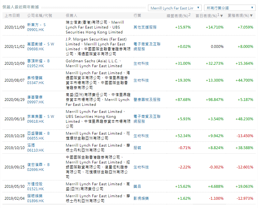 美银、花旗、中金担任联席保荐人。从近两年的保荐人数据来看,美银共保荐了11只新股,从上市首日的涨跌幅来看,8涨1平2跌;花旗共保荐了13只新股,上市首日7涨2平4跌;中金近两年共保荐了29只新股,其中今年迄今共保荐了9只新股,上市首日5涨3平1跌,皆表现良好。
