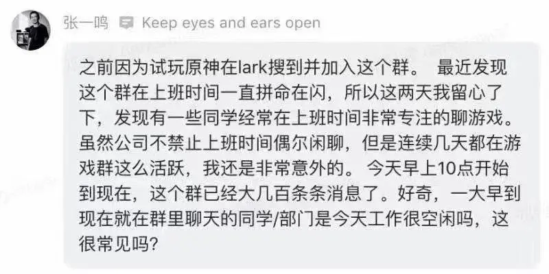 原神再一次火了,这次是因为张一鸣在lark群里的批评,有网友戏称这是中国游戏史上最黑暗的一天。