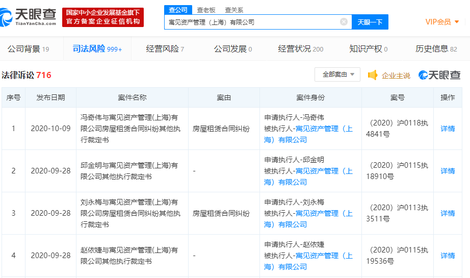 百融云创的租金贷业务,合作方包括蛋壳公寓、寓见公寓、上海歆禺房屋租赁有限公司及上海对邻公寓管理有限公司。据悉,百融云创与蛋壳公寓和合作最为紧密,百融通过旗下公司放贷给蛋壳公寓的资金达数千万元。据南方周末报道称,蛋壳公寓在今年2月就曝出深圳业主集体讨要房租,CEO高靖和投资方高管更是在6月被警方带走调查。此外,天眼查数据显示,寓见资产管理有限公司遗留多达716条诉讼开庭公告;上海歆禺房屋租赁有限公司遗留445条在诉案件。