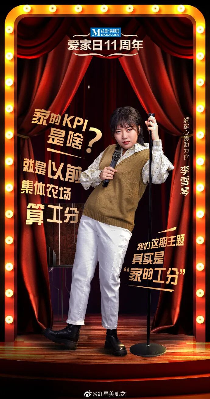 原来这是红星美凯龙携手李雪琴打造的一场以“家的KPI”为主题的脱口秀。的确,对于太丧的2020年来说,红星美凯龙这一次用诙谐、幽默代替了以往的煽情,让“爱家”拥有了更多可能性。
