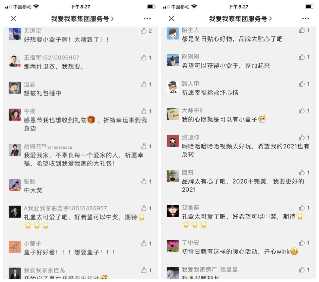 此外,在当下很多品牌只追求让消费者薅羊毛、低价促销、保本直播的急功营销下,我爱我家通过送礼活动,将潜在消费者进行了对品牌私域流量的引流与搭建,跟消费者进行持续有效的沟通和链接。从营销上升至服务
