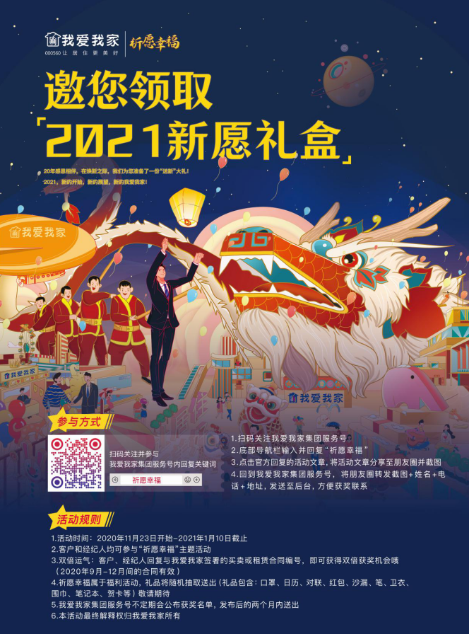 另外两个片段,则是通过小姐姐的情感心态、职场拼搏小哥哥的职场态度,分别传达了“骄傲的你,值得拥有更好的”“稳住,人生定能逆风翻盘”的正能量人生态度,凸显感恩骄傲和感恩坚韧的信息点。值得一提的是,小哥哥去“我爱我家”面试,并作为主角逆风翻盘的转折点,巧妙将剧情和品牌相承接,赋予品牌正能量价值内涵,并让用户潜意识增强对品牌的认知和好感。我爱我家还开启了“祈愿幸福”主题活动,从品牌角度来讲,感恩20年的陪伴,在焕新之际,为用户准备一份“送新”大礼,意喻新的开始,新展望,新的“我爱我家”,将感恩态度和品牌进行高效链接。