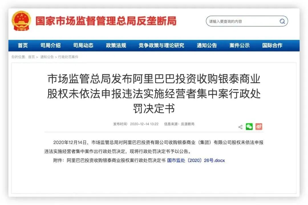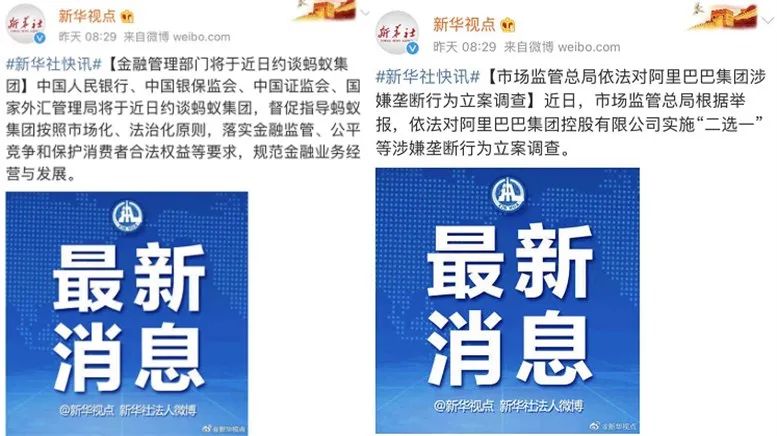 12月24日上午,新华社发布重磅消息,市监总局对阿里实施“二选一”等涉嫌垄断行为进行立案调查,随后,更是称马云将被四大顶级金融监管部门约谈。