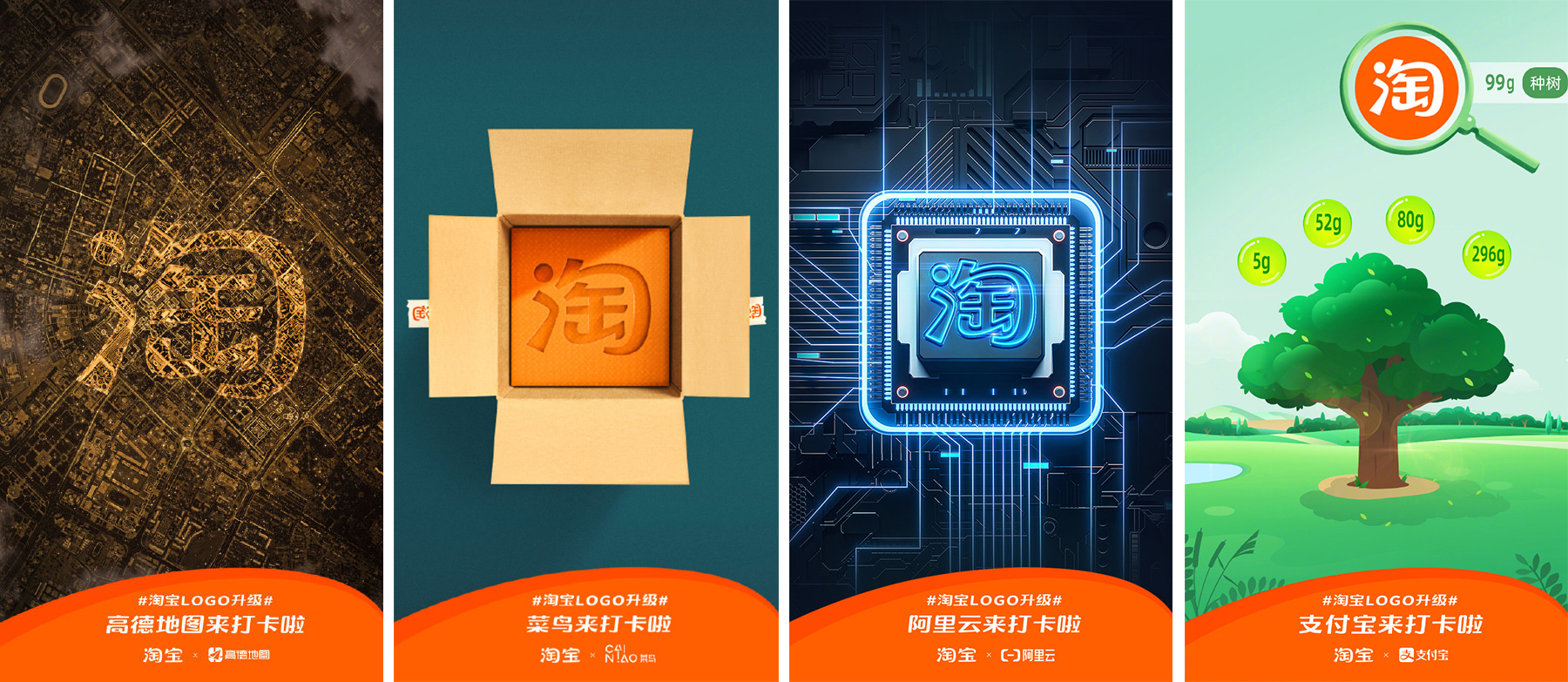 除此之外,淘宝将“淘”字应用到多个阿里系的业务版块中,各个品牌还发布了一张带有新“淘”的宣传海报,这也是为了让人们能在阿里系的多元化场域中,都能联想到淘宝,换句话说,这是一次阿里系整体的品牌形象升级,在18年后,为“淘宝”办了一场成人礼。