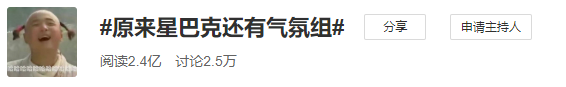 随后,星巴克及时接住了这个梗,还发布了一则招募通知:立即招募官方气氛组30人,招募时间在12月21日-27日内任期一周,顺势给自己来了一波宣传。这一话题,24小时被阅读2.3亿,讨论2.5万,一夜之间气氛组火爆刷屏,迅速引起了广大网友的围观。