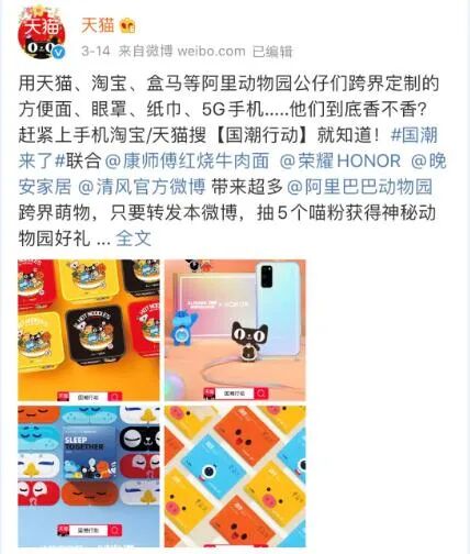 广告大师奥格威曾说:“描绘品牌的形象比强调产品的具体功能特征重要得多。”阿里通过小动物为旗下的众多品牌打造IP形象,一方面是对外打造更加完整的阿里经济体形象,达到全方位的品牌形象建设,另一方面以整体营销和品牌输出赋能商家,实现共赢!近年来,阿里巴巴不断通过外部收购或内部孵化,使动物园的成员越来越壮大。当前,阿里巴巴动物园已经聚集了29位成员,包括天猫、阿里云、阿里妈妈、饿了么、UC、盒马、平头哥、菜鸟网络、阿里健康、大麦网、钉钉、高德地图、聚划算、淘票票、优酷、虾米音乐、闲鱼、幸运猩球、蚂蚁金服、友盟全域数据、飞猪、阿里云、九游APP银泰商业等。阿里动物园,打通了阿里各经济体系,形成IP矩阵,构建了一个强大的小动物IP联盟形象,就如同美国漫威漫画《复仇者联盟》,里面汇聚了钢铁侠、雷神托尔、绿巨人、蚁人、美国队长和黑寡妇这些超级英雄,被称为“地球上最强超级英雄组合”。很多时候,联盟作战,高效协作,力量自然更加强大,而明显,IP组团营销能够加倍增加声量,而且触达的用户群体圈层更广泛。近年来,“圈层文化”概念开始流行起来,而圈层的兴起,凸显了圈层用户强大的消费需求及影响能力。不过,随着时代的发展,各圈层文化的壁垒逐渐被打破,而且融合多个圈层文化的内容产品将产生新的裂变。这意味着融合多个圈层文化、把握不同圈层用户的需求的内容产品将引领下一个时代。动物园IP矩阵由29个IP组成,每个圈层都代表着一种圈层文化,阿里动物IP集体搞活动时,可以相互助阵,不仅快速获得消费者的喜爱,而且同时能够触达多圈层的消费者群体。试想一个IP就是一个圈层,29个IP就是29个圈层,集体搞事,可以打破圈层的障碍,进行流量互导,从而达到更强的营销效果。阿里的动物园IP联盟,作为阿里的经济体形象,已经成为一种营销的无形资产,时常以整体营销和品牌输出造势宣传,当下,营销通告量正在快速上升。春招时,天猫、淘宝、阿里云、钉钉、盒马、菜鸟、优酷、高德等IP伙伴组团成为“招聘者联盟”,为阿里开启2020实习生招聘进行淘宝直播造势。3月份时,阿里大家族加入天猫国潮行动,用天猫、淘宝、盒马等阿里动物园公仔们的形象进行跨界,联合康师傅红烧牛肉面 、荣耀、 晚安家居 、清风品牌,定制方便面、5G手机、眼罩、纸巾等一系列跨界萌物。借助天猫的营销IP“国潮来了”与众多品牌跨界,不仅利用受众对国潮的关注度,强化阿里动物形象在受众心中的印象,同时赋能天猫上的商家们。本次阿里动物园MV,同样如此,一方面加强了自身的品牌建设,一个方面赋能商家,联动阿里旗下的淘宝、天猫、支付宝等若干平台,帮助中小企业渡过疫情难关,开拓新市场。可见,节点、热点或其他大事件宣告时,阿里动物园成员就要出去,以IP矩阵进行整体营销和品牌输出。这些可爱的动物形象,成为阿里品牌连接消费者的通路,也是自我造势营销的不竭动力。