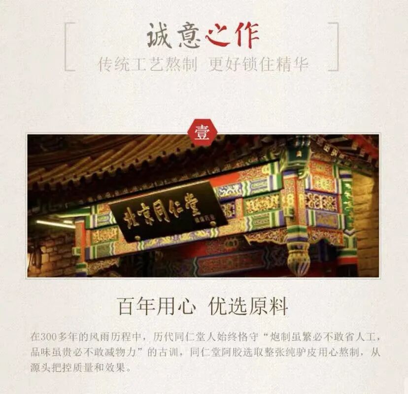 以同仁堂系列产品为例,它的产品详情页中总会提及”中华老字号”、“百年老店”这样的关键词。