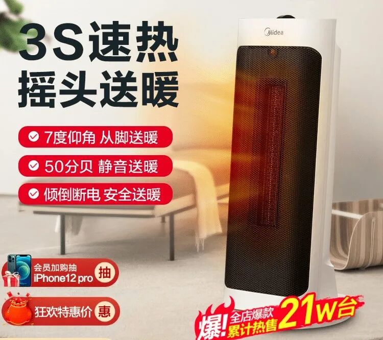 同样的例子,还有美的的取暖器文案。小家电的卖点有很多,比如静音、省电、安全等等。