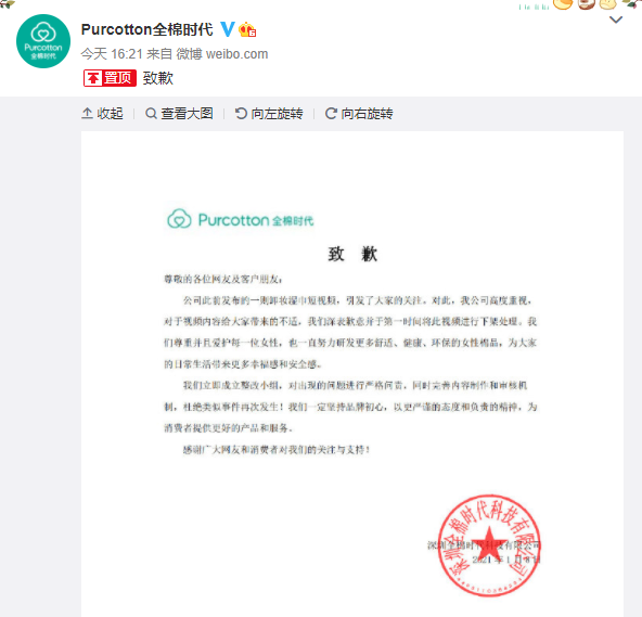 全棉时代:“对不起,我真棒”