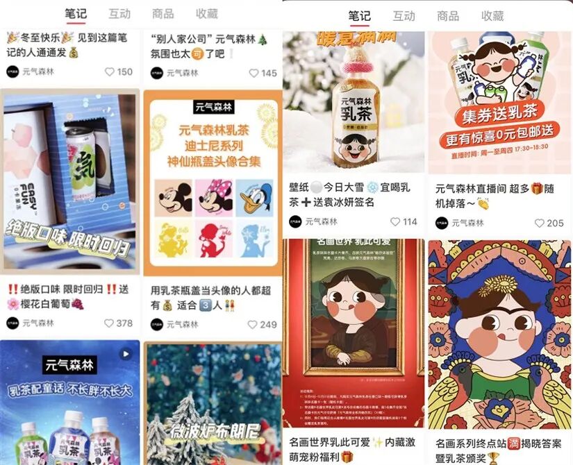 找开小红书可以看到,有关元气森林的内容丰富多样,诸如元气森林乳茶妹cos有奖大赛、冬季限定甘王草莓气泡水,下午茶0元无限量免费吃,无糖气泡水是智商税,用乳茶瓶盖当头像的人都超有钱……