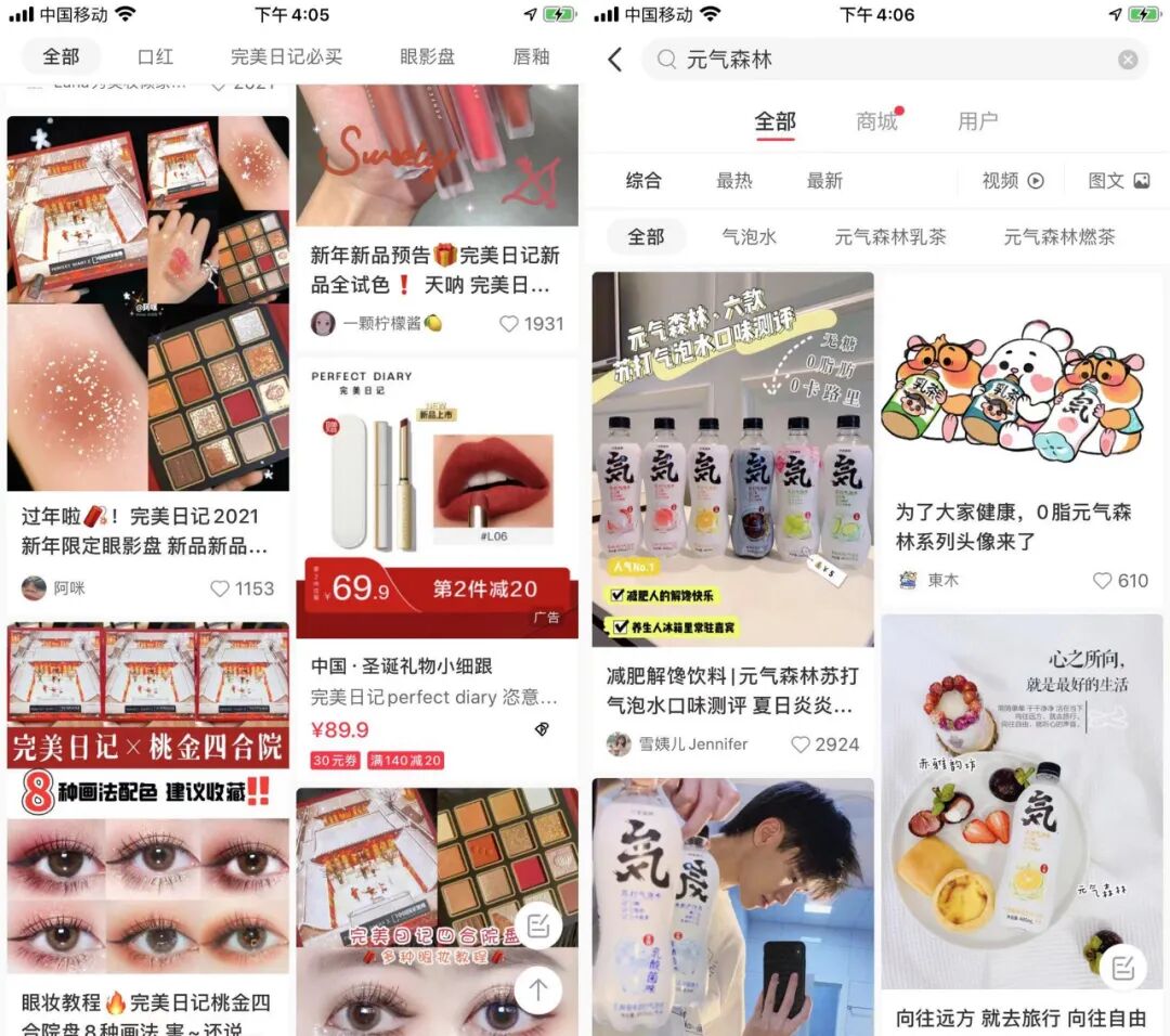 而且当下,打开小红书抖音等社交网站,搜索元气森林、完美日记等网红品牌,你会发现大量新品测试视频,这些品牌几乎天天泡在这些社交平台,洞察用户的消费喜好,这些都是用户数据,可以用来反哺产品的研发和上市,让产品更贴合消费者的需求。