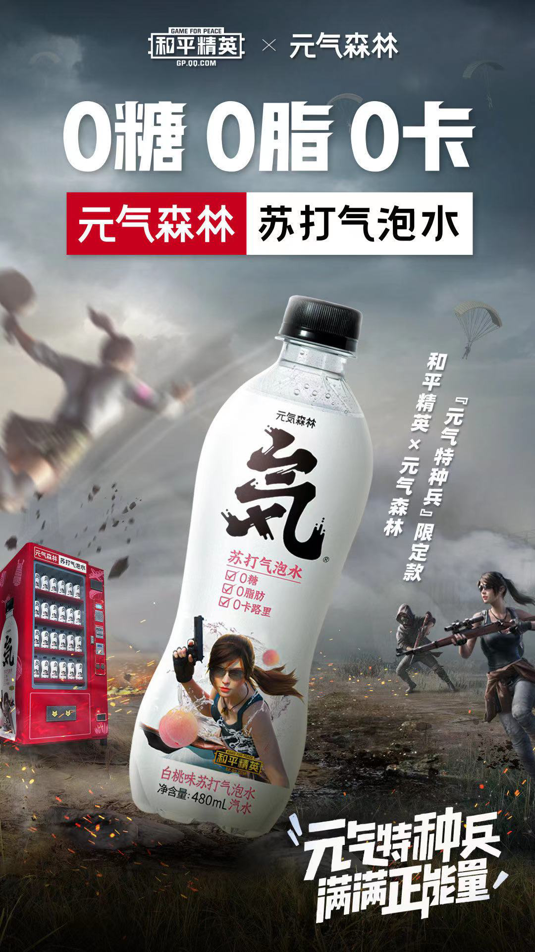 比如投放《元气满满的哥哥》时,并非简单的品牌曝光,还与《和平精英》IP联动,品牌推荐官王鹤棣化身于元气特种兵,并推出联名服饰、夏日限定版苏打气泡水,通过和用户有关的深度内容,垂直渗透游戏圈层。
