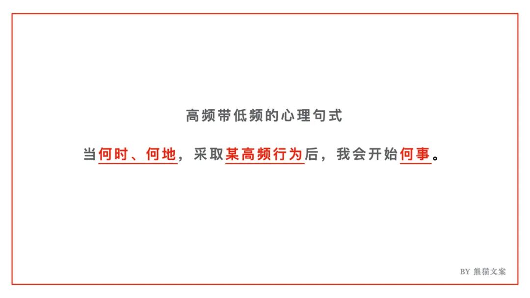 高频带低频这么好用,怎么用于改变自己的生活呢?你可以把它变成“执行意图”的PLUS版:当何时何地,我在高频习惯后,就开始新改变。