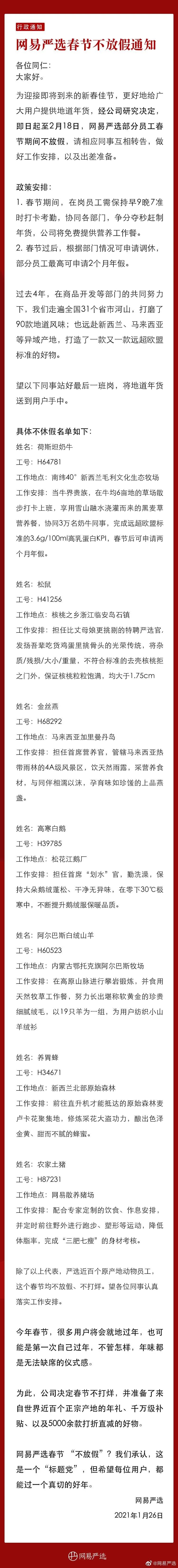 居然发布了一条「春节不放假通知」