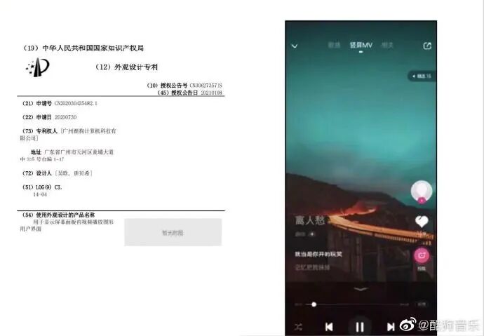 等啊等,经过近8个小时的事态发酵,酷狗音乐终于出来正面回应了。原来官方一直未发声,是去找“原创专利申请”的文件了。