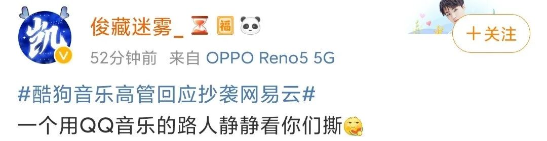 总的来说,此次网易云对战酷狗,大多数人都是抱着吃瓜态度,并没有太上纲上线地站队。至于谁对谁错,谁又抄袭了谁,也都是放平心态、默默吃瓜。