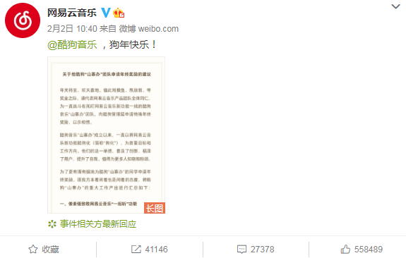 前几日,福特中国刚“错将”牛年当马牛,遭遇惨烈翻车。如今,网易云音乐又突然发微博祝酷狗音乐“狗年快乐”。