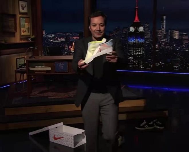 △图为国外节目主持人介绍Go FlyEase。截图自国外综艺节目《吉米今夜秀》