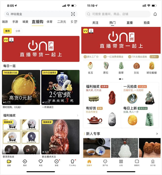 早在3年前,YY一件便开始专注于珠宝玉石、文玩茶叶等专业源头直播和产地直销,赋能5万+商家,拥有遍布全国的11大产业带直播中心,如今已发展成为国内非标品直播电商领域的领航者。