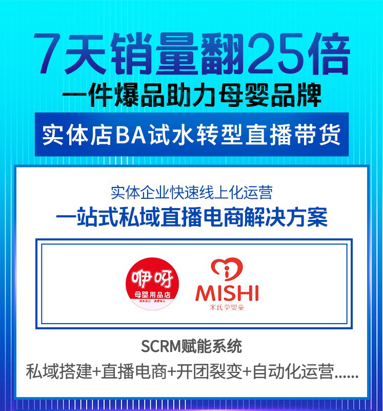 经过一个多月的磨合探索,YY一件帮助咿呀母婴&米氏孕婴开展门店直播大赛,号召了全国500家线下门店试水转型线上直播带货,进行手把手直播教学,7天达成销量翻25倍。