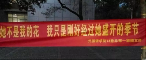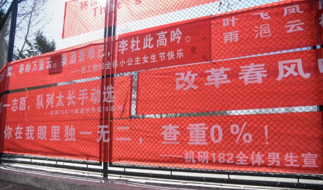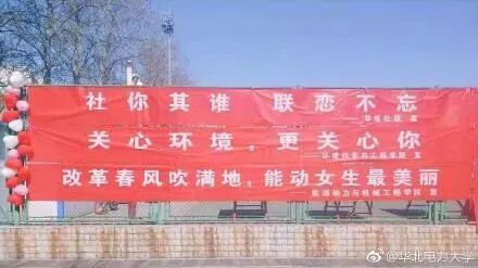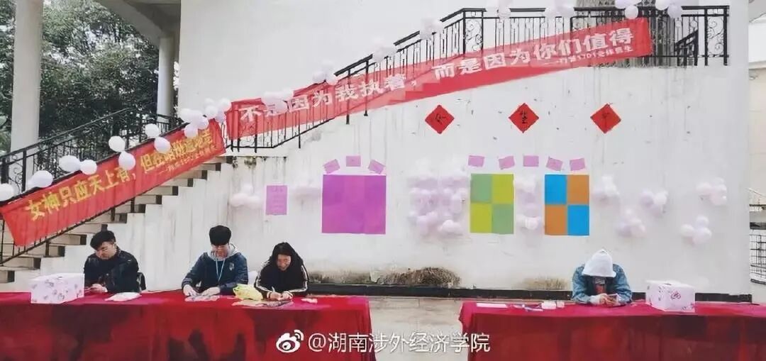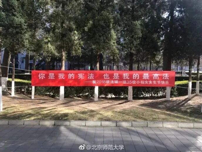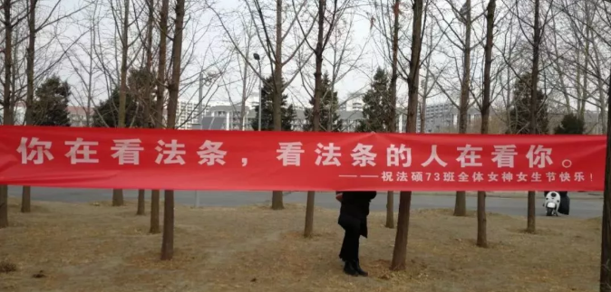 例如近期争议蛮大的「女生节」,就是由38妇女节衍生出来的新节日。每年这个时候,不仅商家们会掀起暗流涌动的营销大战,各大高校也不免迎来一年一度的“条幅文案大比拼”。今天不妨看看,广大直男们为了这个节日,都绞尽脑汁想(憋)出了哪些硬核文案吧~果然大学里个个都是人才,写出来的文案更是可深情、可文艺、可搞笑。正所谓引用得了经典诗词,又结合得了热门段子,实在是太6了!