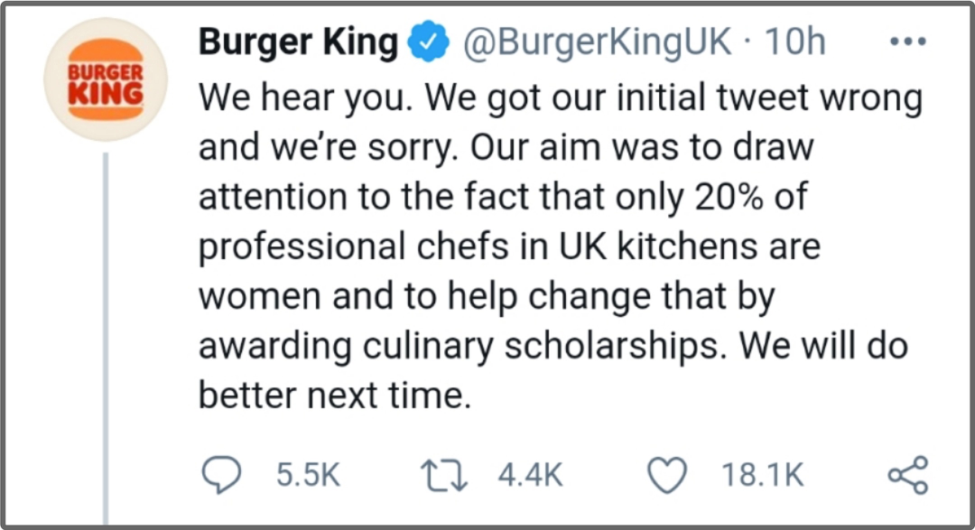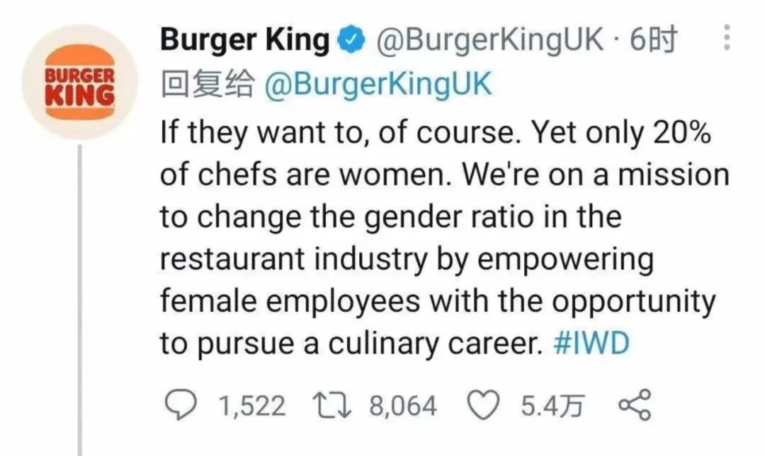 却公然说出“女性就该待在厨房”这样的话,汉堡王称: