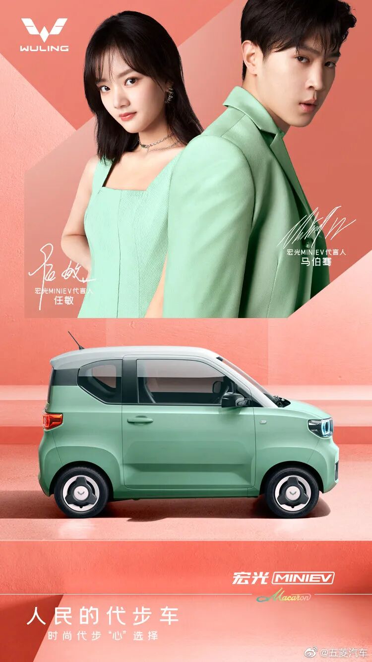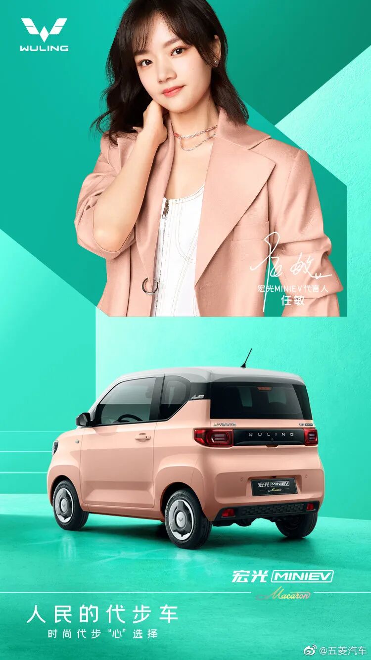 除了产品之外,宣传海报上的代言人,也通过身穿同色的服装,呼应主题。新款宏光MINI EV马卡龙这时尚的配色和萌萌哒的造型,不知道又将俘获多少女性用户的芳心。