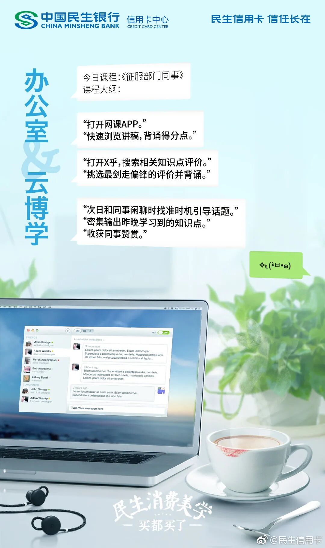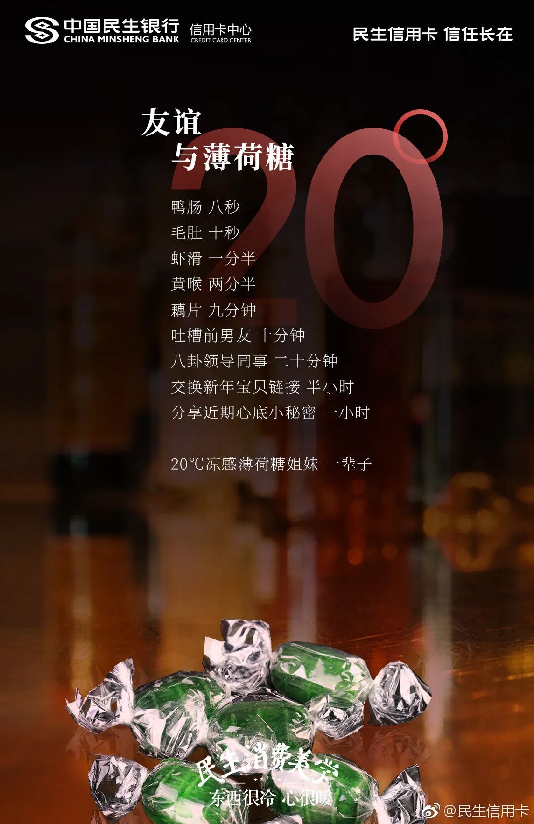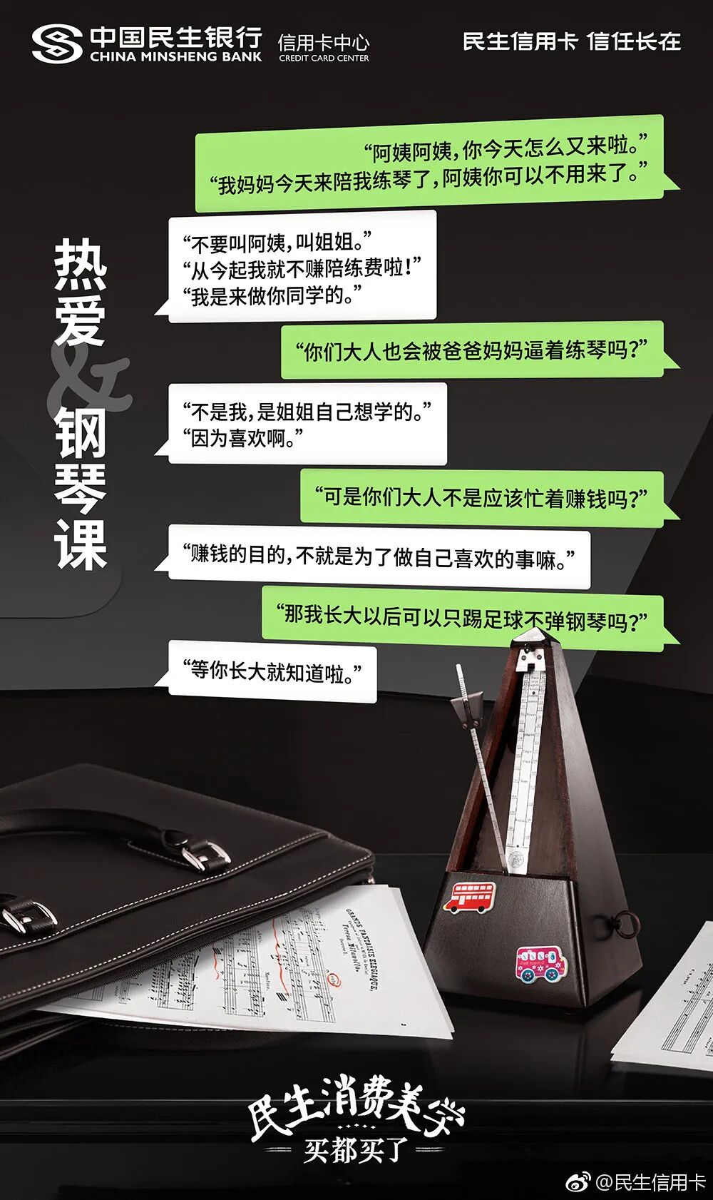 看多了海报式文案,偶尔民生信用卡也会把微信聊天记录做成文案。