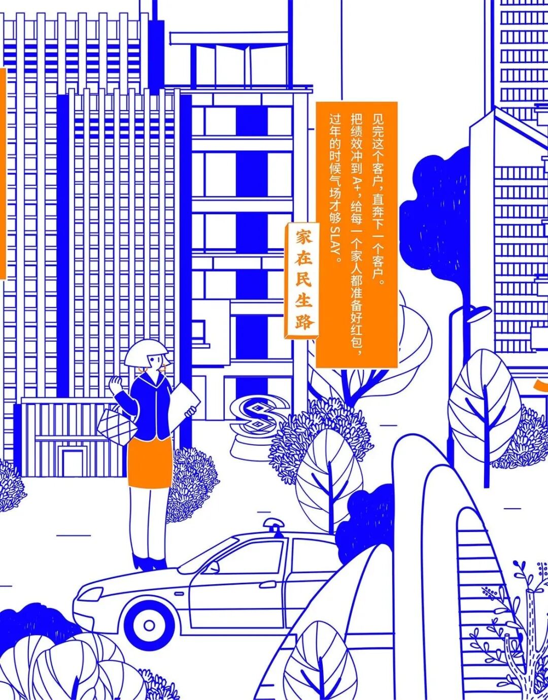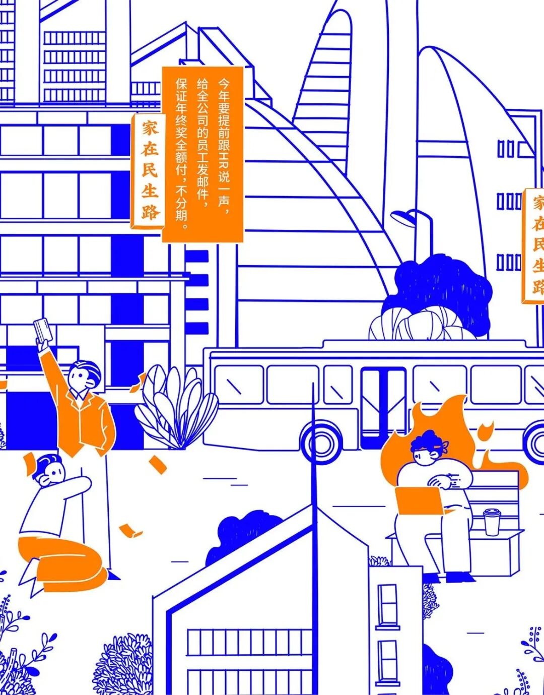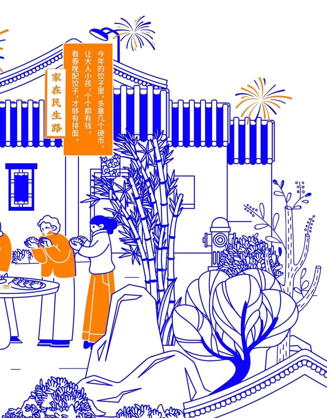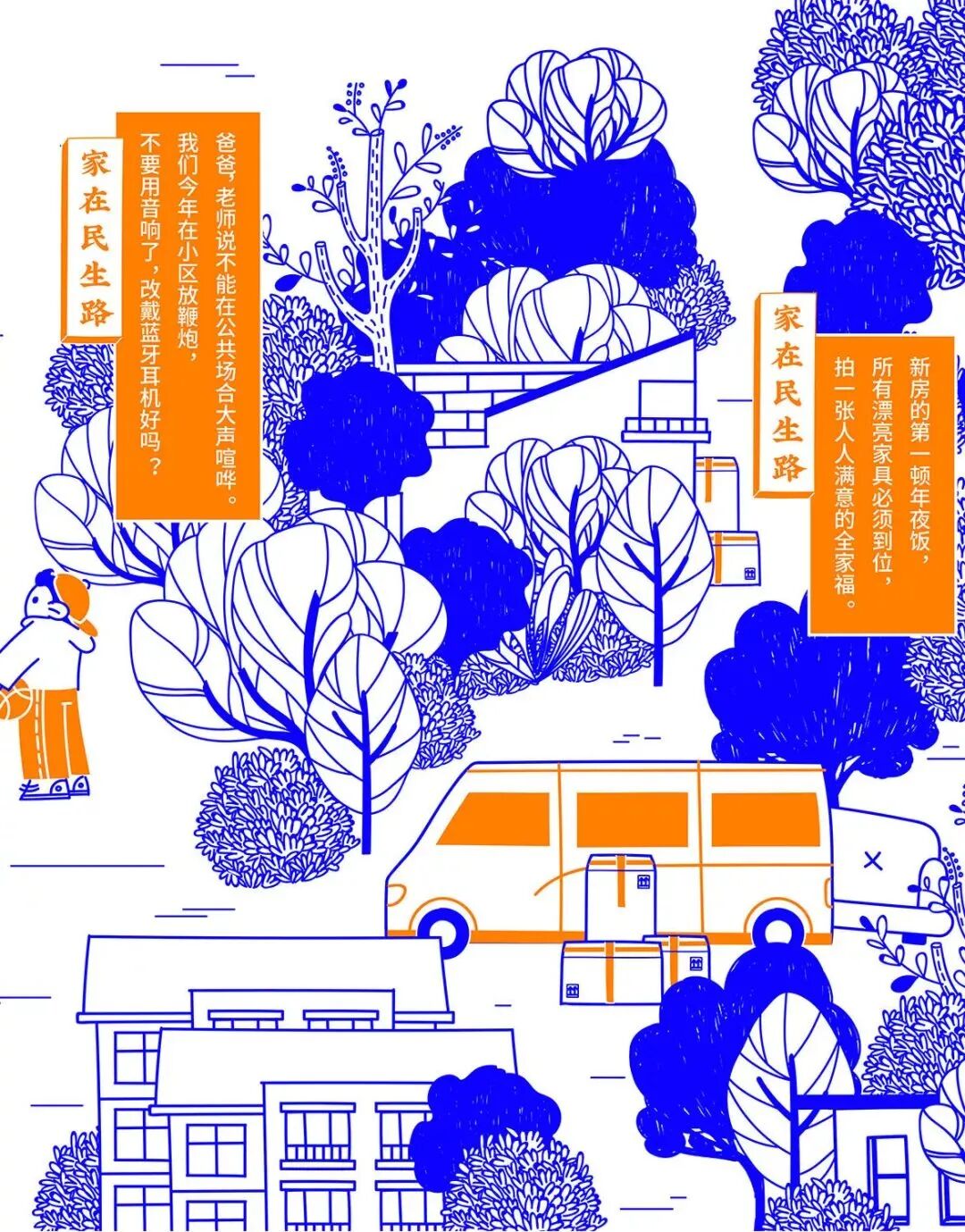 今年春节,民生信用卡捕捉大家春节回家的团圆场景,结合品牌名“民生”的美好寓意,绘制一幅有梗、有春意《家在民生路》图鉴。