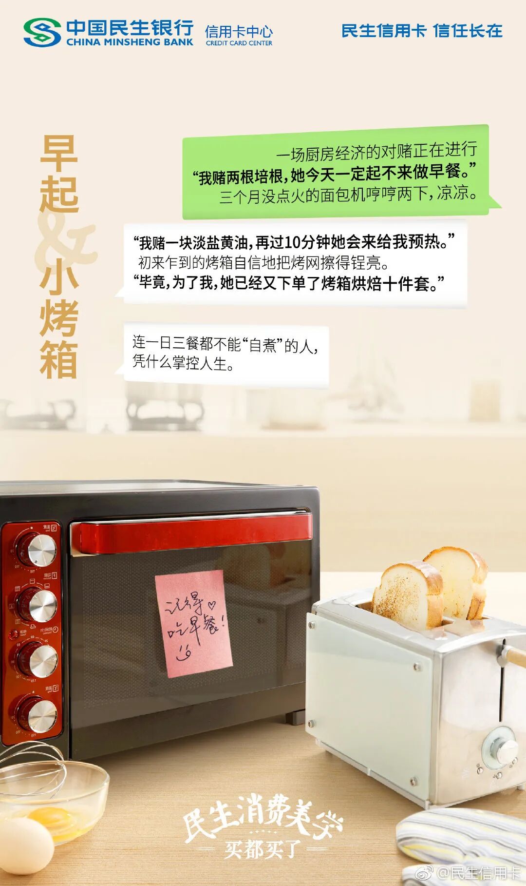 民生信用卡没有卖弄词藻,但却让人身临其境,文案自然了无营销痕迹。
