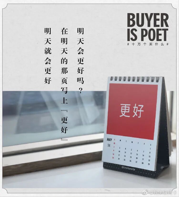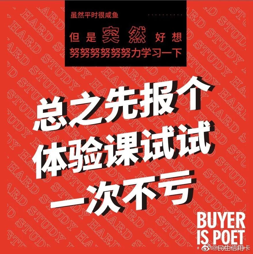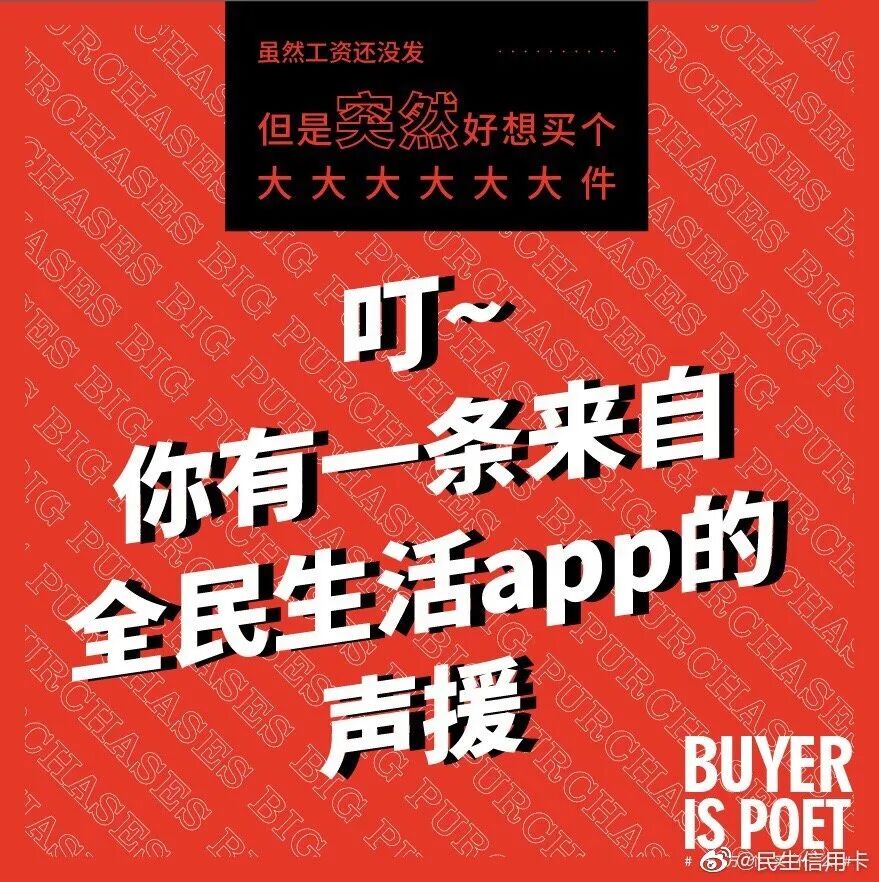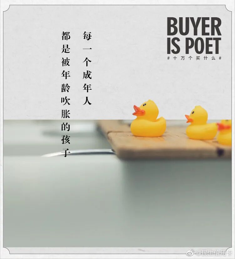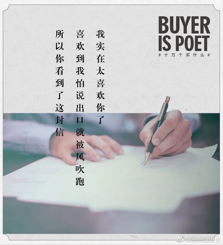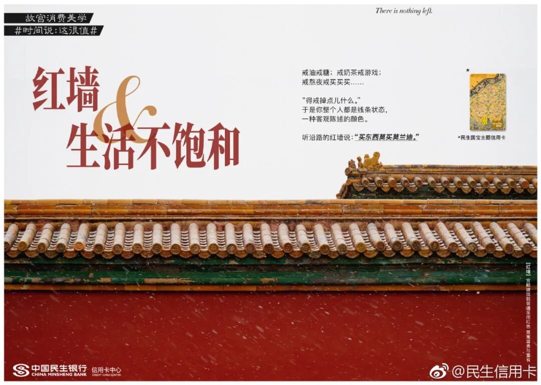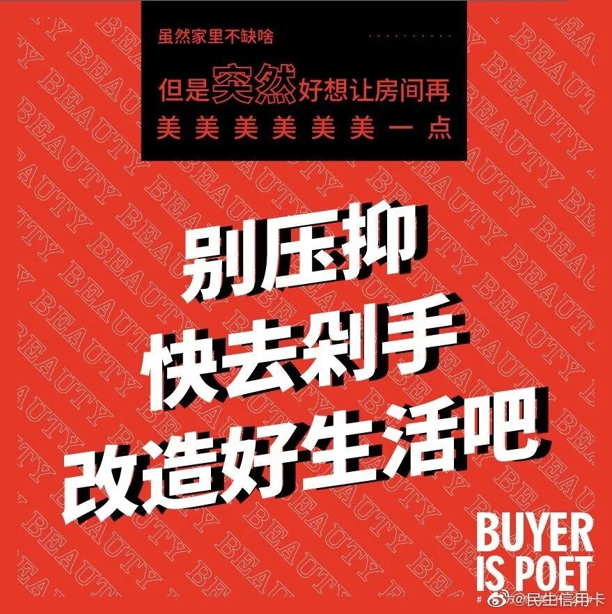 但我发现在银行领域,有个品牌的文案,也可以媲美台湾全联的“经济美学”文案。民生银行信用卡的文案,总能以美学的视角审视花钱这件事,给年轻消费者一个消费的理由。