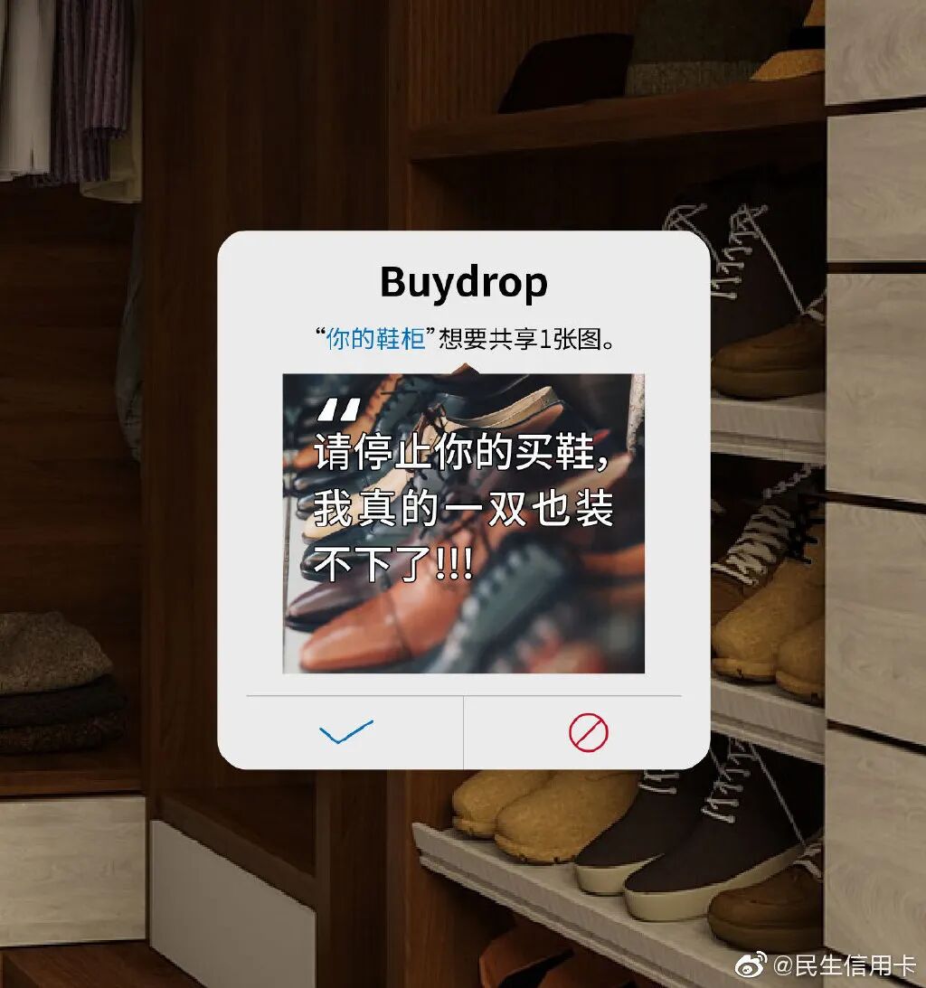 就算只是看看手中的小物件,都会接受到来自生活的感动。哪里有冷静的消费,偶尔买东西也是来自冲动的时刻,但在民生信用卡看来,一切都是合乎情理。民生信用卡还会让衣柜、鞋柜假装要消费,告诉你生活还需要入手一件什么东西。遇到生活太难的时候,左手火锅,右手冰阔乐,瞬间感到一切都值得。