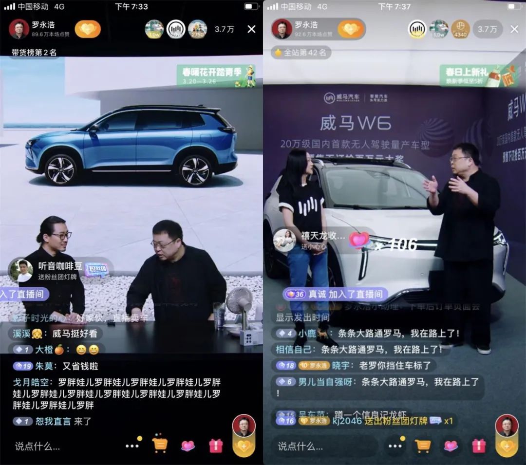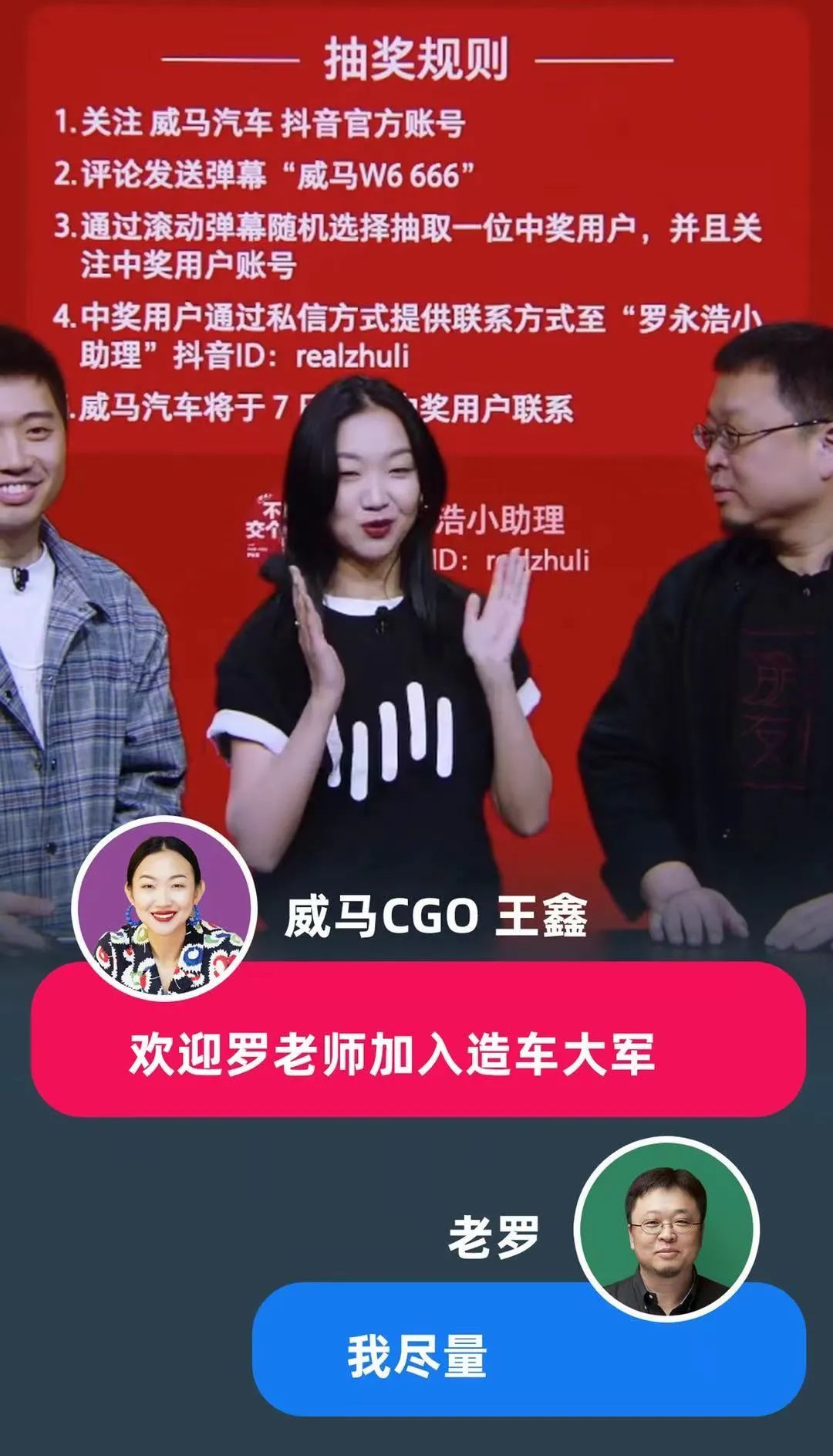 罗永浩与威马汽车在「交个朋友」直播间成功奔现