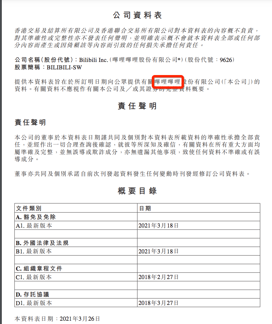 后来,B站也将上市公告内容更新了,把名字处改回“哔哩哔哩”。