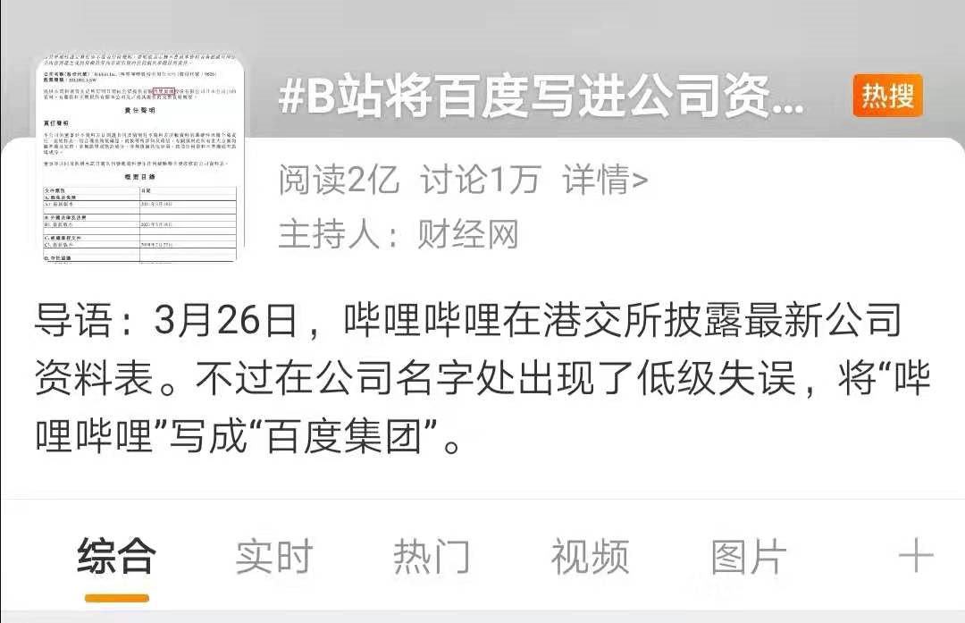 所以再看回B站和百度,两家公司都是顶流互联网大厂,刚好最近都在搞二次上市,多种因素加持,一下子就放大了低级错误,也就自然而成为热搜话题。