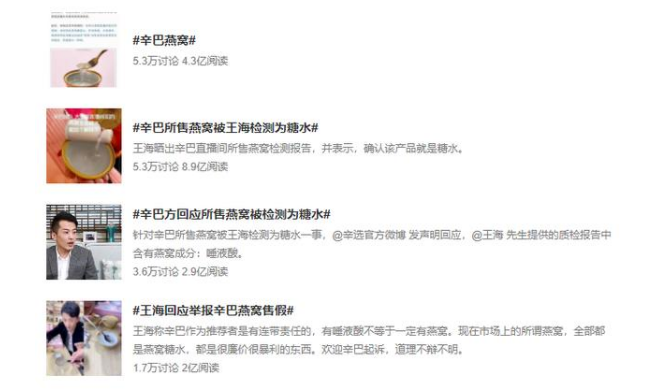 还记得去年快手主播辛巴卖假燕窝被封号吗?当时微博话题阅读量超 8 亿,10 万多人参与讨论。